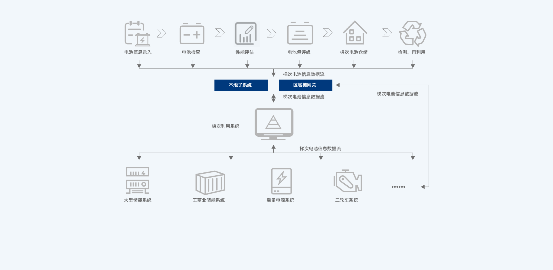 利用区块链技术对梯次电池进行建档和身份认证,并可实施强制年检。